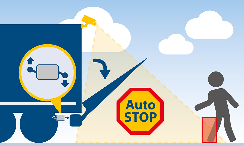Together with AI reversing cameras, the Bär VisionAssist assistance system monitors the movement radius of the platform and stops it automatically if there is a risk of collision. Not a vision of the future, but reality at BÄR.